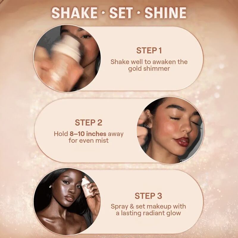 Schönheit geht nicht nur um gut auszusehen – es geht darum, sich selbstsicher zu fühlen. Unser Fixierspray verleiht ein makelloses Strahlen mit echtem 24-Karat-Gold, während Antioxidantien die Haut gesund halten. Perfekt für den Alltag oder durchtanzte Nächte – ein Produkt, das den Wunsch Ihrer Kunden nach müheloser Perfektion anspricht.